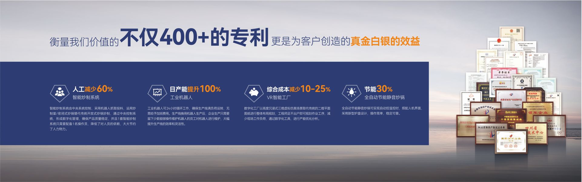成都??茩C(jī)械設(shè)備制造有限公司(簡稱:成都??疲┦且患壹邪l(fā)、生產(chǎn)、銷售、服務(wù)為一體,專注為中國傳統(tǒng)食品行業(yè)提供自動(dòng)化、智能化、數(shù)字化、智慧工廠整體解決方案的國家級高新技術(shù)企業(yè)。公司擁有標(biāo)準(zhǔn)化辦公樓及現(xiàn)代化生產(chǎn)車間約42000m2,具有較強(qiáng)的綜合研制、設(shè)計(jì)開發(fā)、生產(chǎn)能力,具備嚴(yán)格的質(zhì)量管理體系和完善的售后服務(wù)體系。公司業(yè)務(wù)范圍覆蓋:復(fù)合調(diào)味品智能生產(chǎn)線、中式醬鹵肉制品智能生產(chǎn)線、醬腌菜智能生產(chǎn)線、智慧餐廚、央廚預(yù)制菜調(diào)理智能生產(chǎn)線,與海底撈、天味、九毛九、聚慧、楊國福、絕味、雙匯、新希望、無窮、烏江、吉香居、仲景、李記樂寶、Tyson、益海嘉里、開小灶、老鄉(xiāng)雞等眾多知名企業(yè)合作。截止目前,成都??埔呀?jīng)助力超2000+企業(yè)順利投產(chǎn)5000余條生產(chǎn)線,為客戶創(chuàng)造年產(chǎn)值超1000億元!